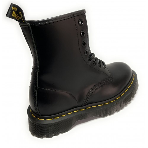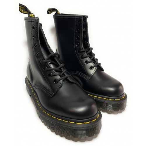 Scarpe da donna Dr.Martensmodello ad Anfibio(1460Bex)in pelle colore nero, fondo con carroarmato più alto rispetto al modello 1460 classico, cucitura gialla che segue la pianta della scarpa.Tacco: 4,00cmPlateau: 2,50cm