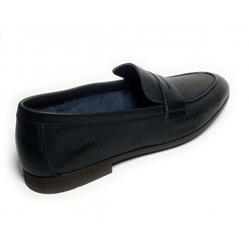 Scarpa da uomo Frau modello Mocassino in pelle colore Blu, fibbia sul collo del piede.Fondo in gomma, tomaia e sottopiede in pelle.Le scarpe dell'azienda Frau hanno la caratteristica di avere una calzata abbondante, quindi si tende a prendere una taglia in meno rispetto a quella che si porta solitamente.