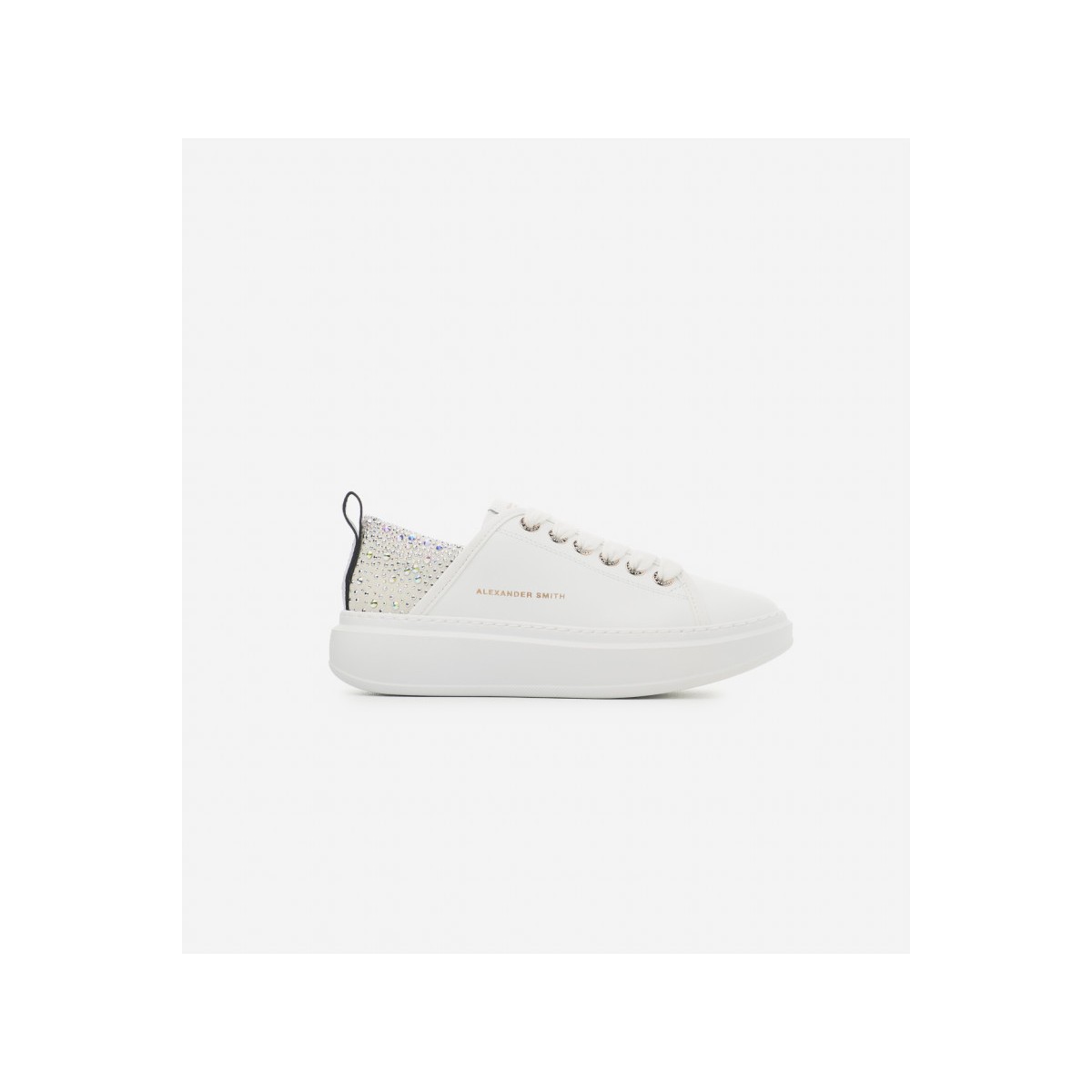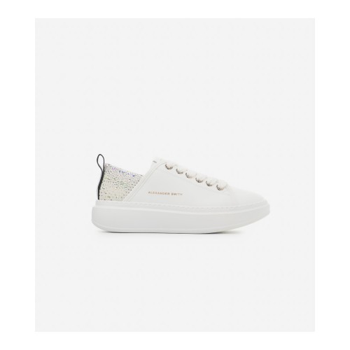 Ecco le specifiche delle sneakers in pelle bianche con strass da donna con logo Alexander Smith, modello ASAZWYW-0506-WIA White: