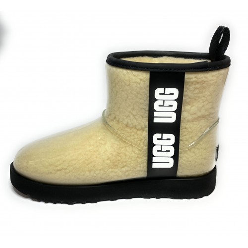 Scarpe da donna Uggmodello mini realizzato in vera pelle di montone colore bianco, con rivestimento impermeabile a ricoprire tutta la scarpa.Interno rivestito in pelle(pelliccia) di montone.Fondo in gomma nero.